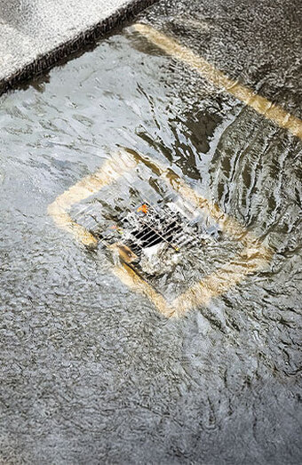 Fast-response clearing of storm water pits and grated inlets clogged with debris during storms, preventing backflow and surface flooding.